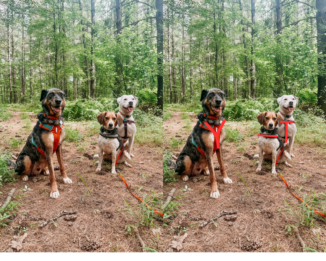 Do you see the βYβ shape that goes up the chest and around each side of the neck? That is an anatomically-friendly harness.