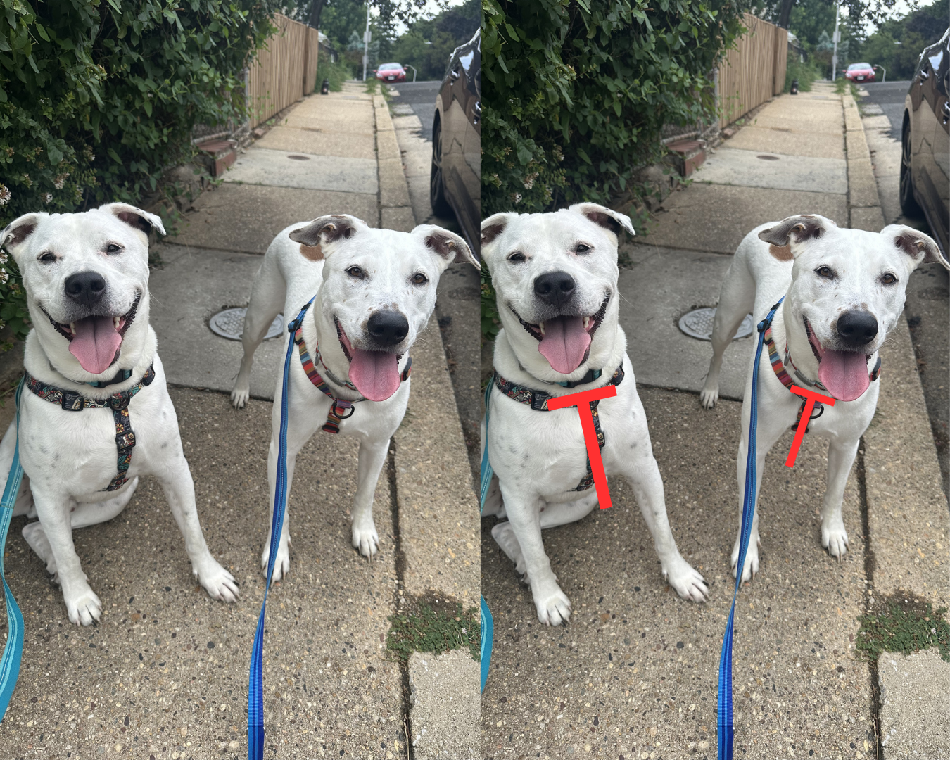 A bonus adjustment is the piece that runs down the front of the dog (connects the neck and chest straps).