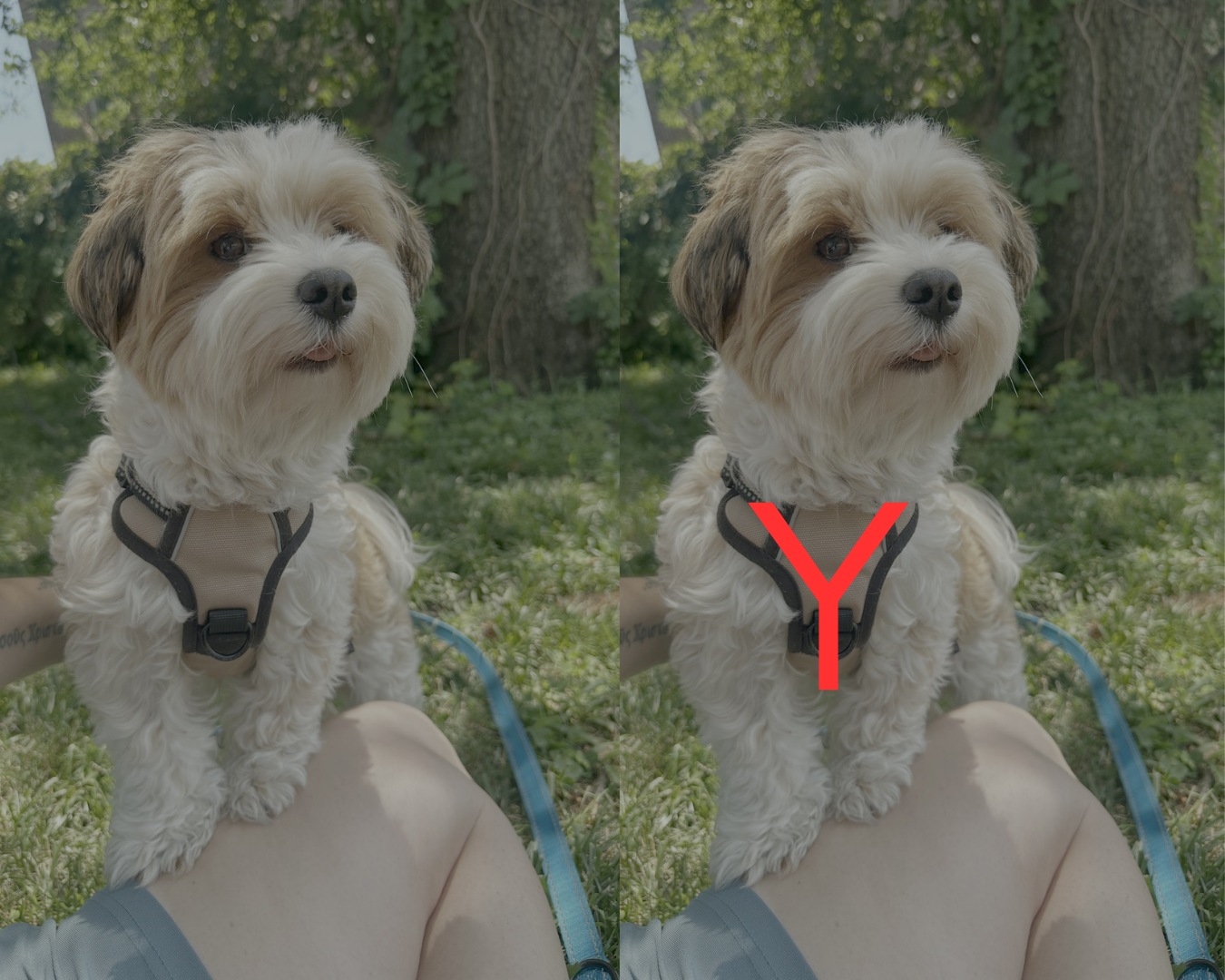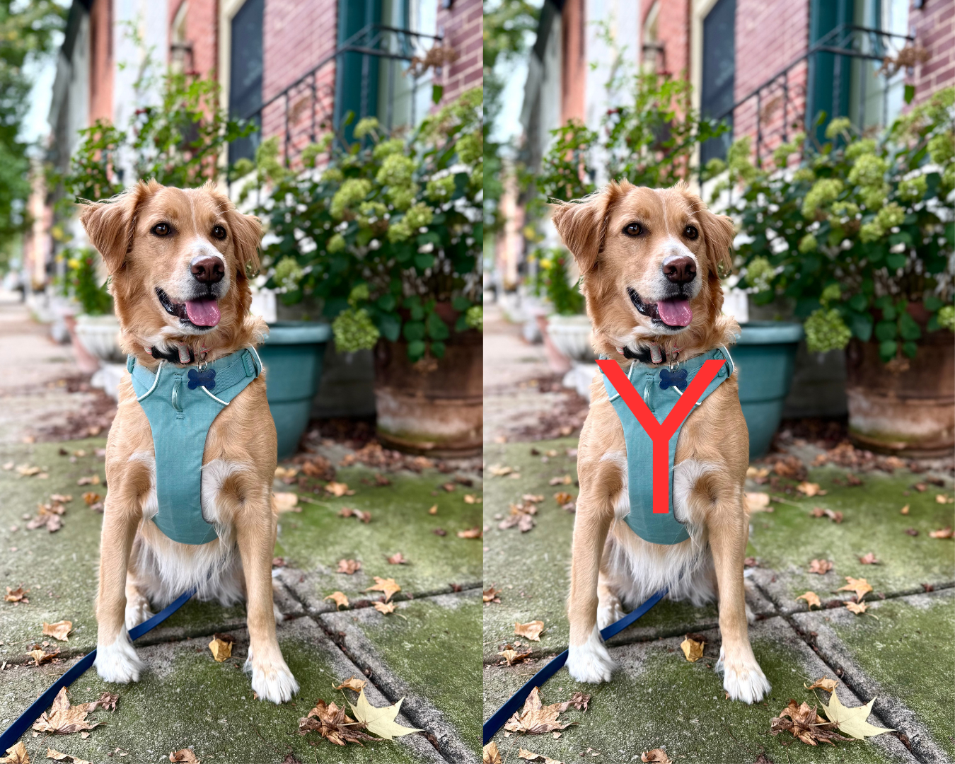 See the βYβ going up the dogβs chest and around each side of the neck? That is an anatomically-friendly harness that allows your dog to move naturally. Itβs usually referred to as a βy-front" harness.