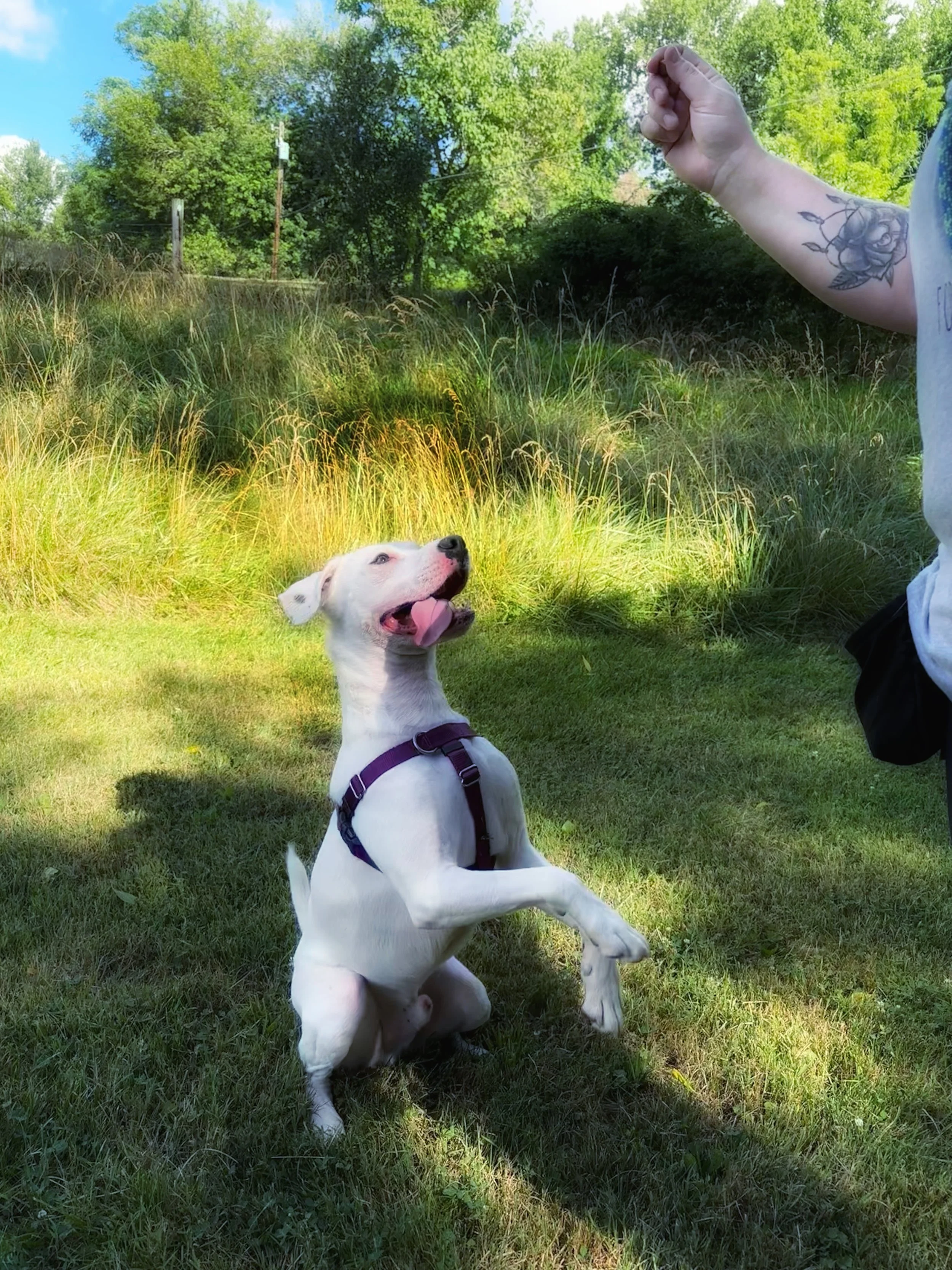 We do not want to require a dog to participate in training activities with us in order to have their basic needs met. Basic needs should always be met without contingencies. This builds trust and safety.